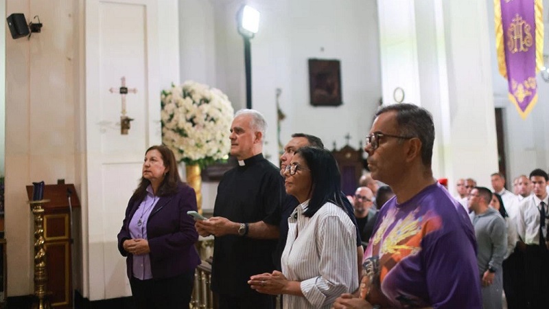 Durante la visita la Presidenta (E) Delcy Rodríguez expresó «Todo lo mejor para Venezuela. Esta Semana Santa nuestras oraciones es para sanar a Venezuela y que así como Jesús llevó esta cruz, nosotros podamos aliviarle la cruz a nuestro país».