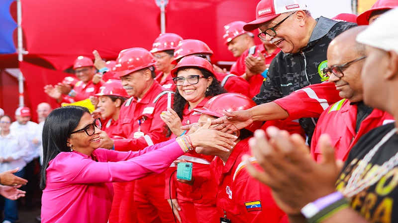 “No tengamos vergüenza de ser un país petrolero, porque yo sé que, también, somos un pueblo profundamente amante de los derechos de nuestra naturaleza, y es un desarrollo con respeto, con amor por los derechos de la madre naturaleza; es un desarrollo con nombre, también, de desarrollo humano de felicidad para nuestro pueblo, y hacia allí tenemos que encaminarnos, querido pueblo venezolano, porque estamos dando pasos históricos”, dijo Rodríguez.